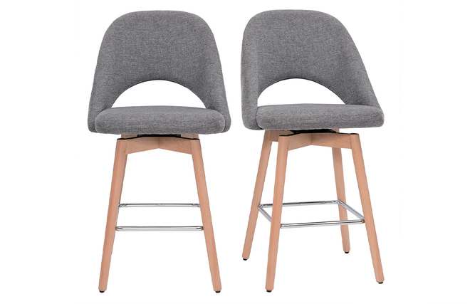 Les tabourets de bar COSETTE réunissent tout ce que l'on aime chez les assises scandinaves. Ils conjuguent à merveille un doux revêtement en tissu effet velours texturé gris à un piétement compas en hévéa massif. Ce superbe jeu de matière est joliment mis en valeur par des lignes rebondies travaillées tout en rondeurs. Délicats et chaleureux, ces tabourets de bar raviront les adeptes de déco cosy façon nordique.