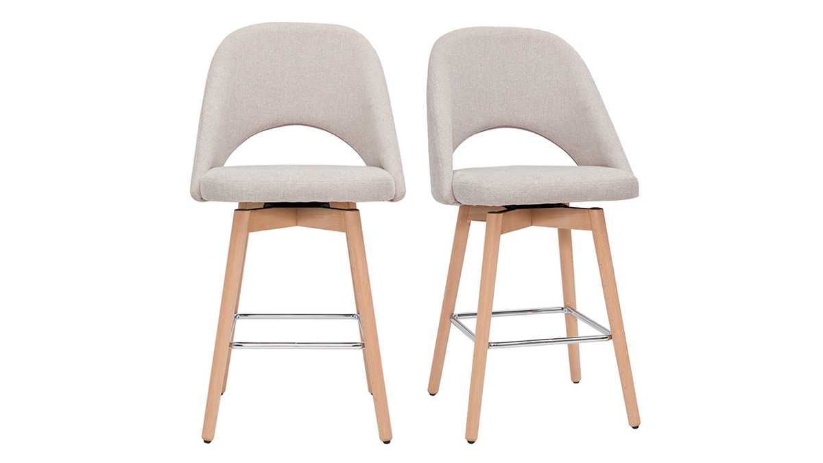 Les tabourets de bar COSETTE réunissent tout ce que l'on aime chez les assises scandinaves. Ils conjuguent à merveille un doux revêtement en tissu effet velours texturé beige à un piétement compas en hévéa massif. Ce superbe jeu de matière est joliment mis en valeur par des lignes rebondies travaillées tout en rondeurs. Délicats et chaleureux, ces tabourets de bar raviront les adeptes de déco cosy façon nordique.