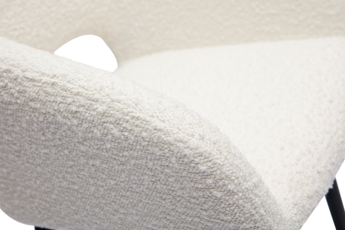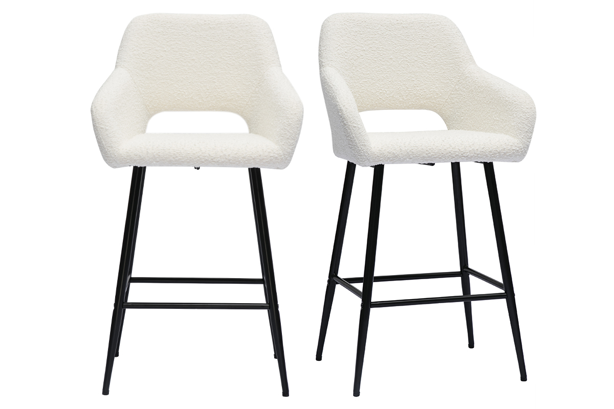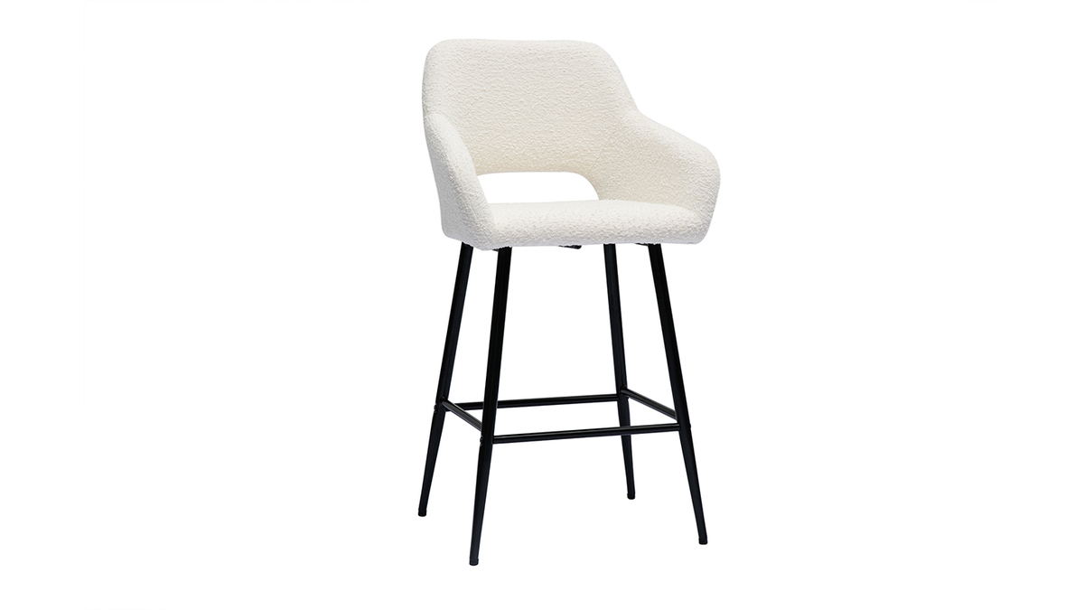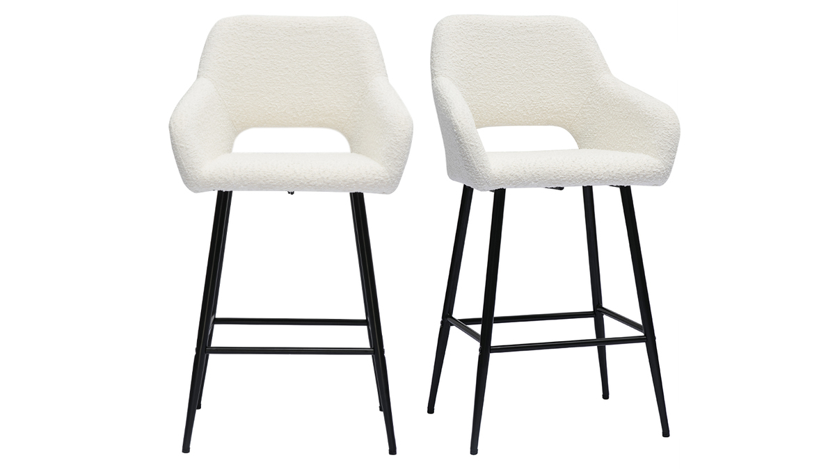 Impossible de ne pas succomber au design unique des tabourets de bar LAURETTE. Avec un siège aux lignes joliment travaillées, ces tabourets captent l'attention par leur forme très moderne. Au-delà de cette belle silhouette contemporaine, ces assises séduisent par leur élégant mix de matières. Elles arborent un doux tissu effet laine bouclée blanc cassé et reposent sur un piètement fin en métal noir. Un sans faute pour habiller les intérieurs branchés !