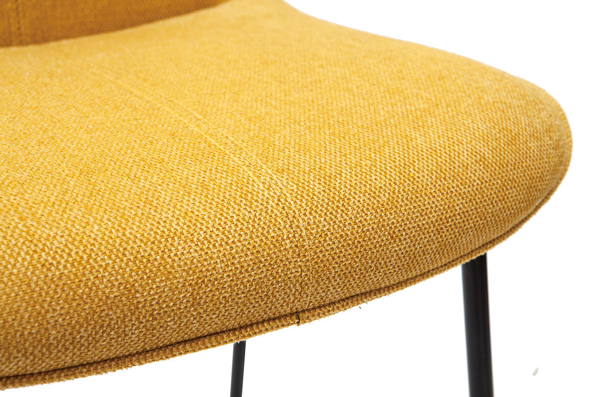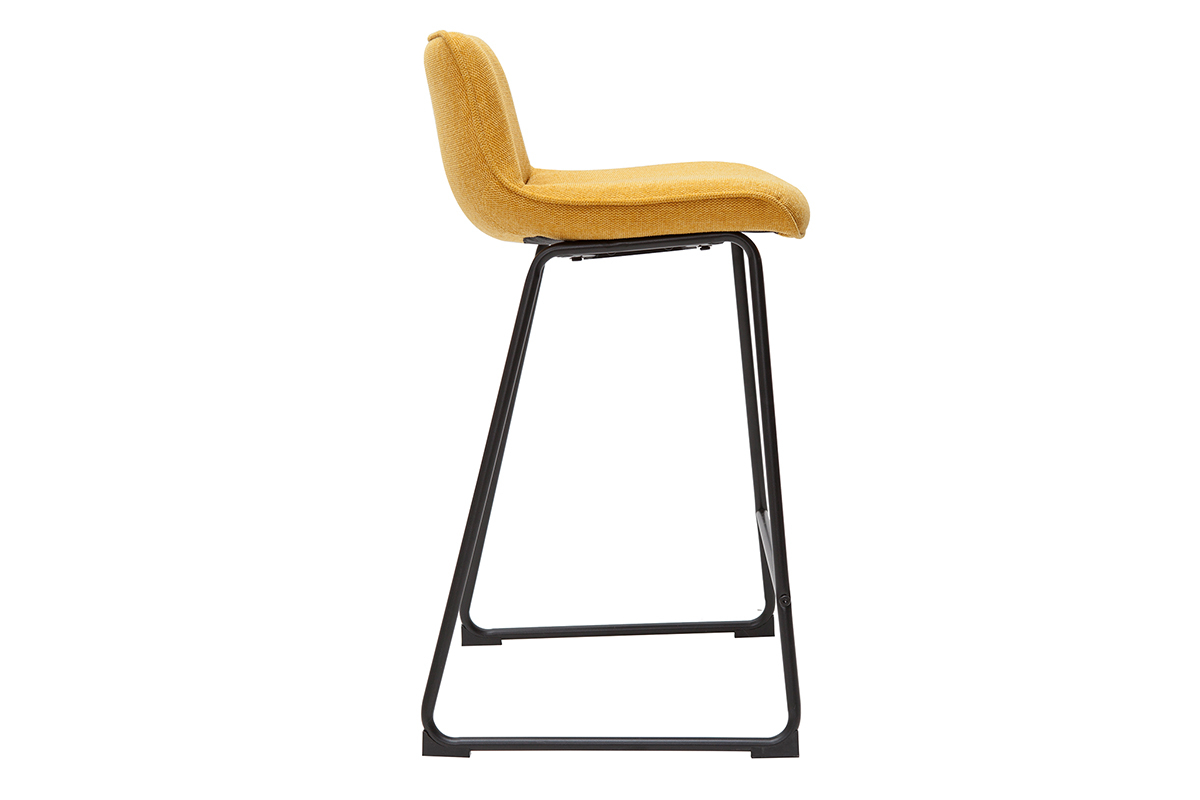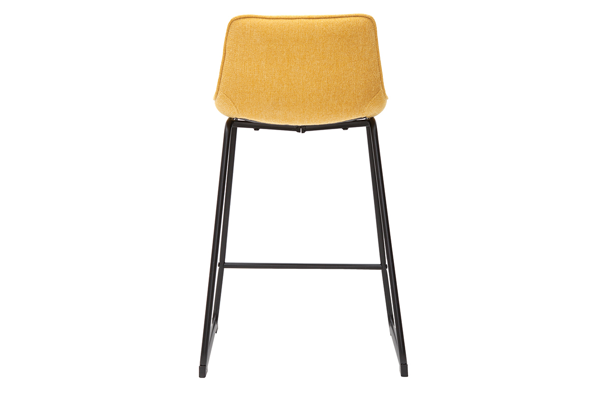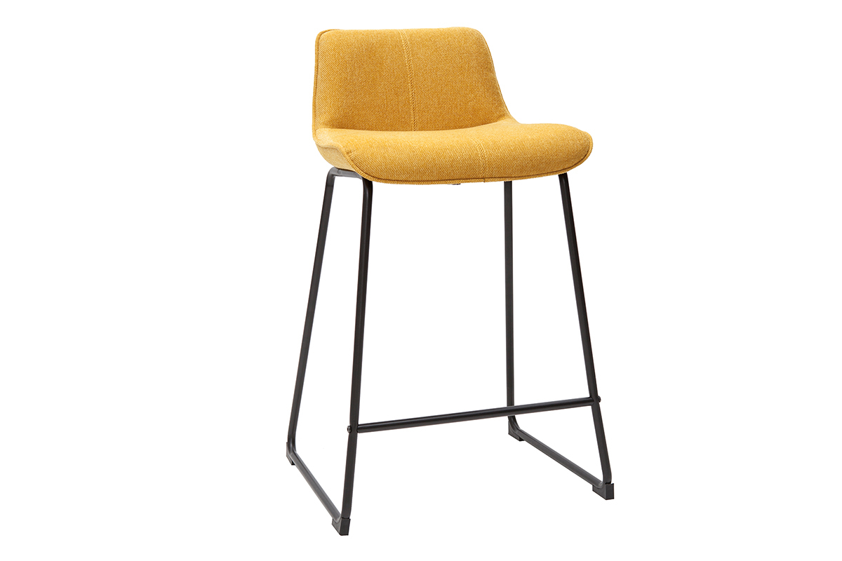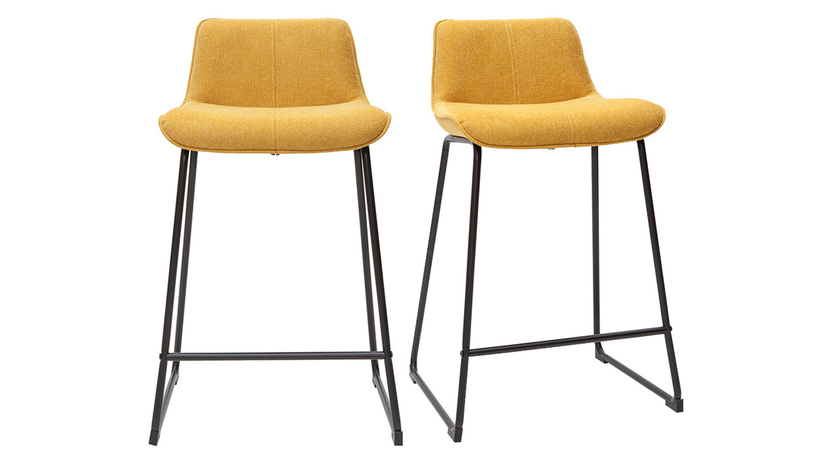 Tabourets de bar en tissu effet velours texturé jaune moutarde et métal H65 cm BOOST vendus par lot de 2. Livrés prêts à assembler.