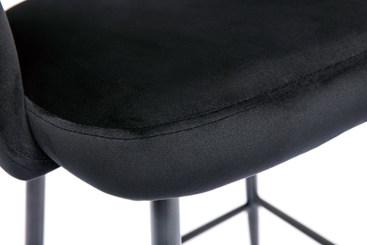 La douceur de leur revêtement, un superbe tissu velours noir, ainsi que leur forme enveloppante laissent toute sa place au confort. Leur dossier haut et courbé (L37 x H38.5 cm) maintient bien la silhouette et leur coque généreusement rembourrée (densité de la mousse 25 kg/m3) garantit un accueil moelleux.