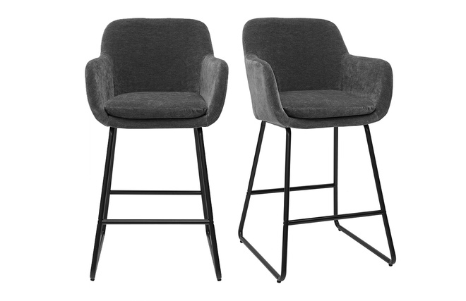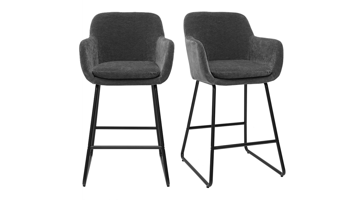 On aime particulièrement le contraste entre le piètement luge en métal noir très élancé et l'enveloppante assise rembourrée et moelleuse à souhait. L'assise et le dossier sont entièrement recouverts d'un joli tissu effet velours 100 % polyester à l'aspect et au toucher doux. La teinte gris foncé ajoute à l'ensemble une touche tendance élégante.