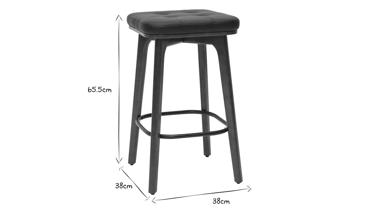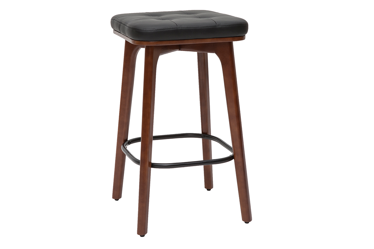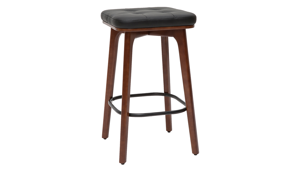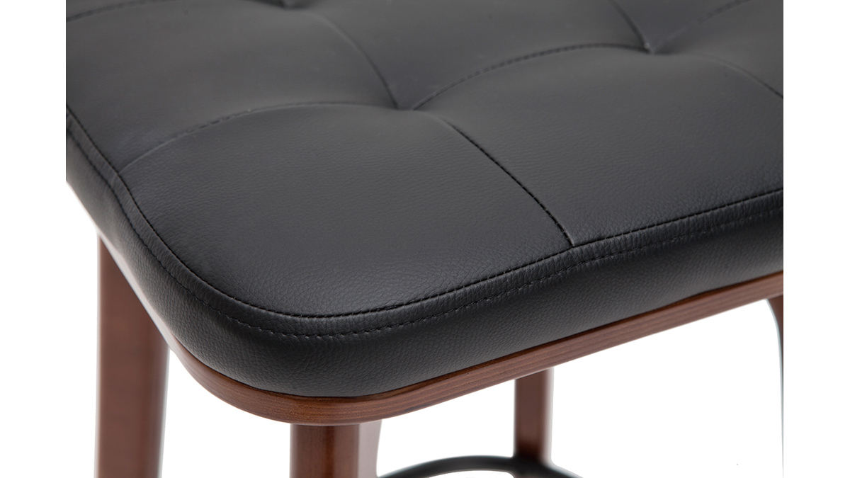 Ces chaises de bar sans dossier combinent avec brio un siège noir à la finition capitonnée, un piètement en bois foncé et un repose-pied noir. Le résultat ? Des tabourets qui s'agenceront avec harmonie dans une salle à manger d'inspiration vintage et à l'esprit loft ou club anglais.