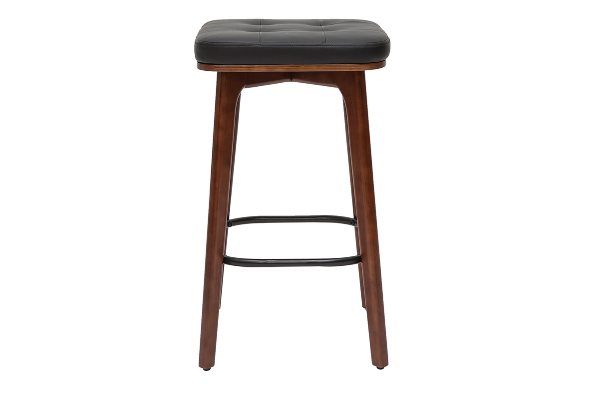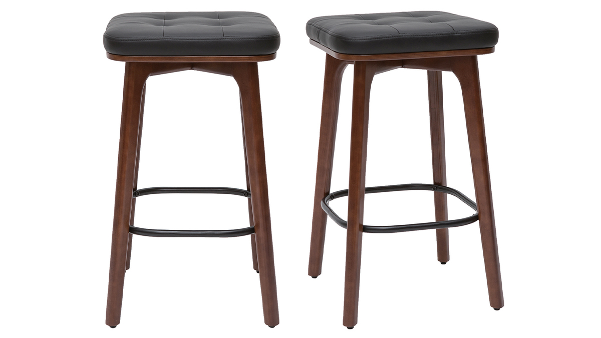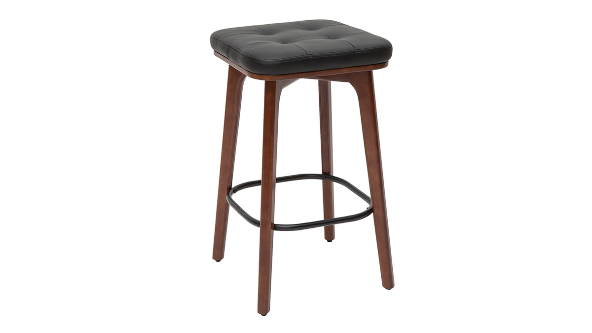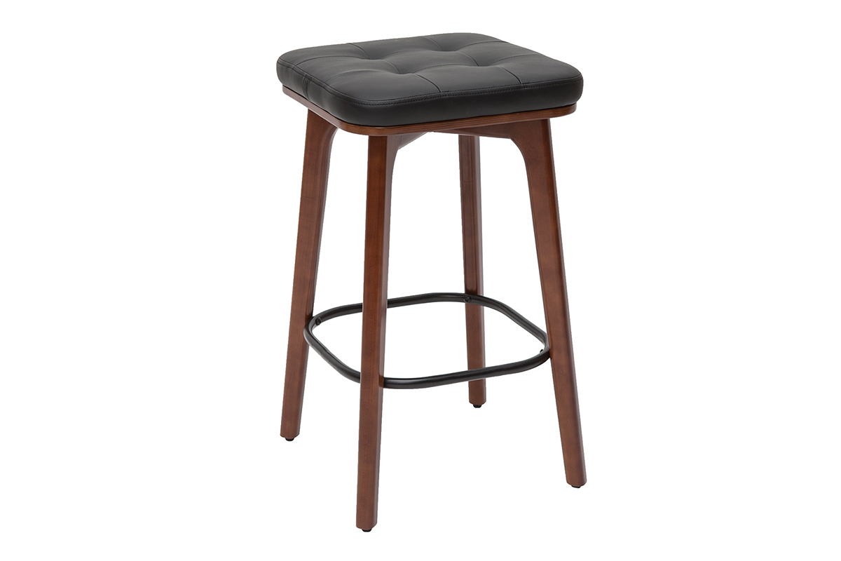 Ces chaises de bar sans dossier combinent avec brio un siège noir à la finition capitonnée, un piètement en bois foncé et un repose-pied noir. Le résultat ? Des tabourets qui s'agenceront avec harmonie dans une salle à manger d'inspiration vintage et à l'esprit loft ou club anglais.