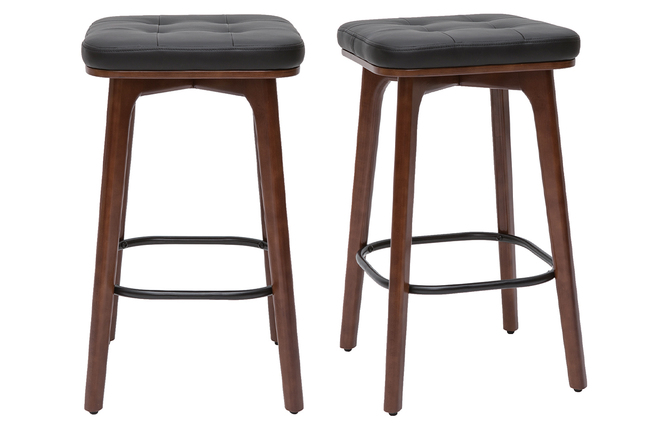 Avec leur silhouette rétro, ils n'en sont pas moins confortables. Le robuste piètement en hêtre massif teinté noyer composé de 4 pieds apportera une grande stabilité à ces tabourets de bar fixes, surmontés d'une élégante assise rembourée 100% polyuréthane (densité 30kg/m³). Laissez défiler les heures des bons moments en famille ou entre amis réunis autour de votre îlot.