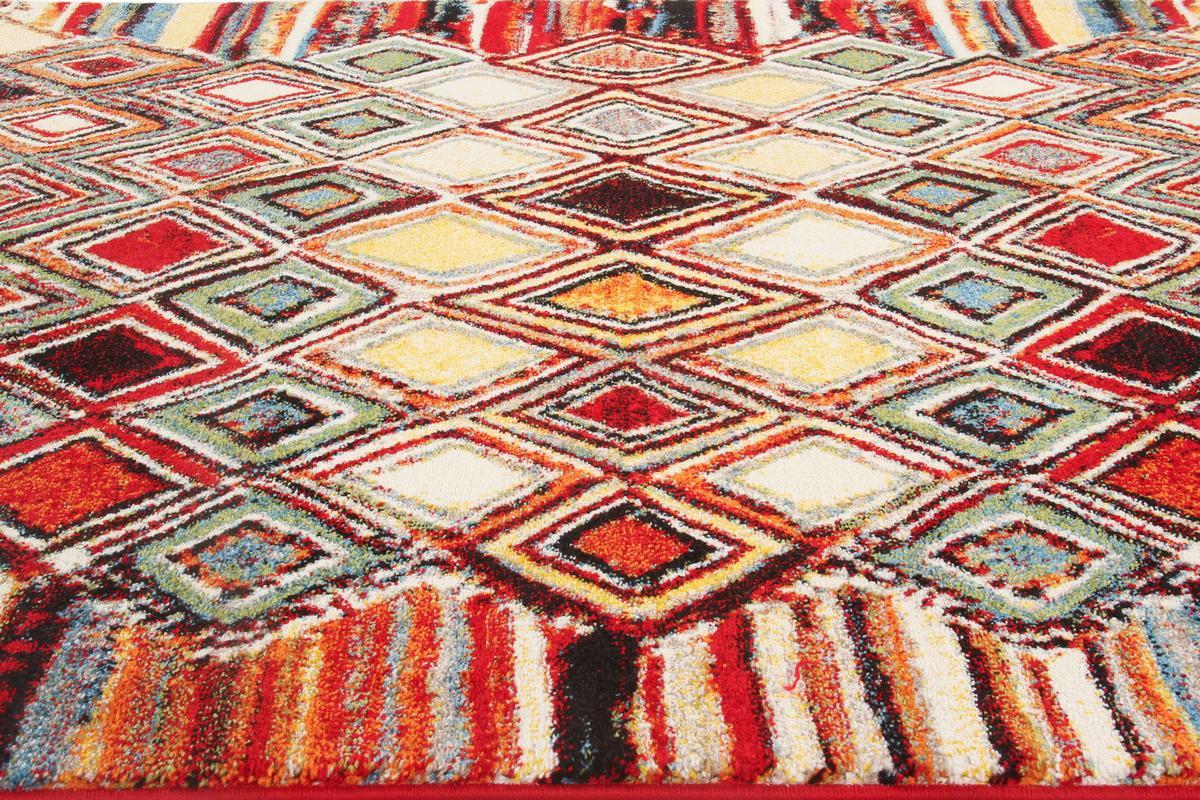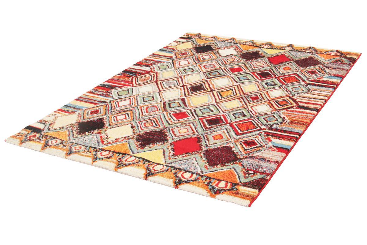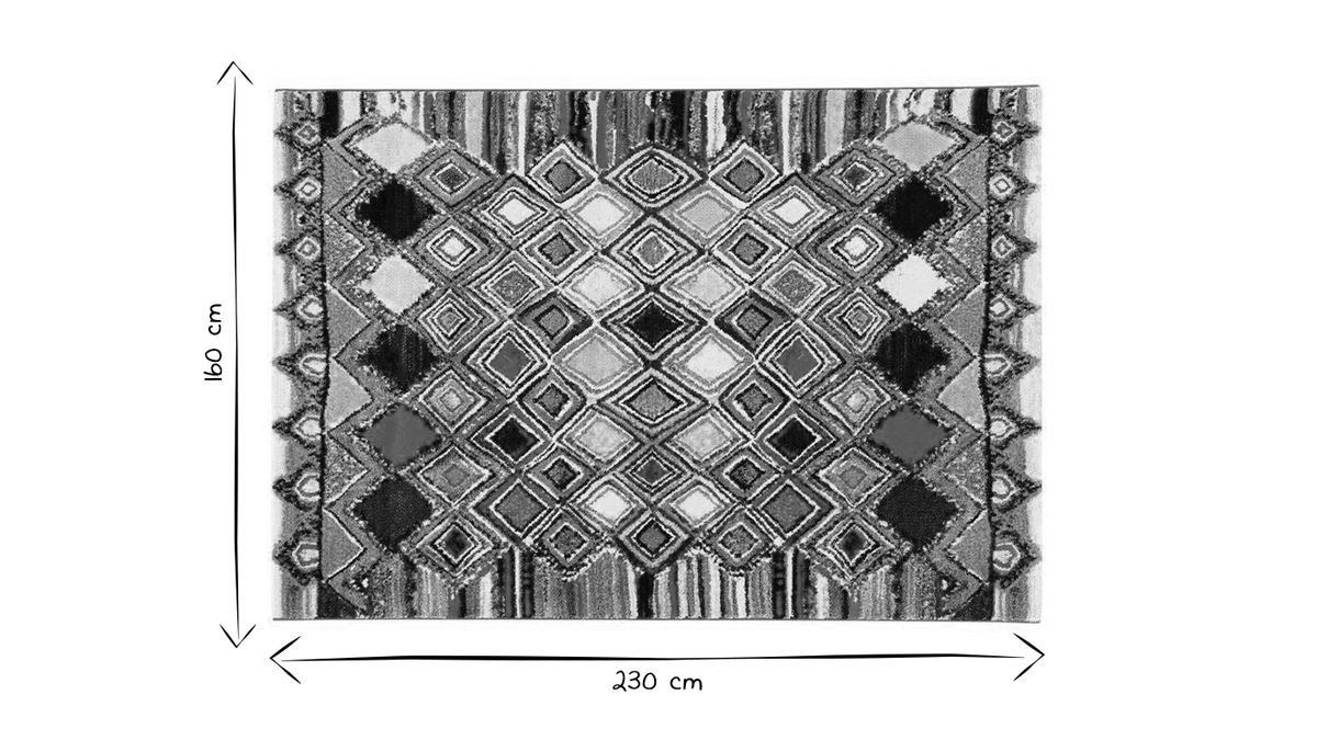 Avec la force de ses motifs géométriques enchevêtrés et la puissance de ses couleurs, le tapis HOLI génère une belle énergie. Les multiples losanges semblent s'élever au-dessus des rayures créant ainsi un superbe effet visuel. Les couleurs vives dialoguent joyeusement entres elles, renforçant un peu plus l'intensité graphique.