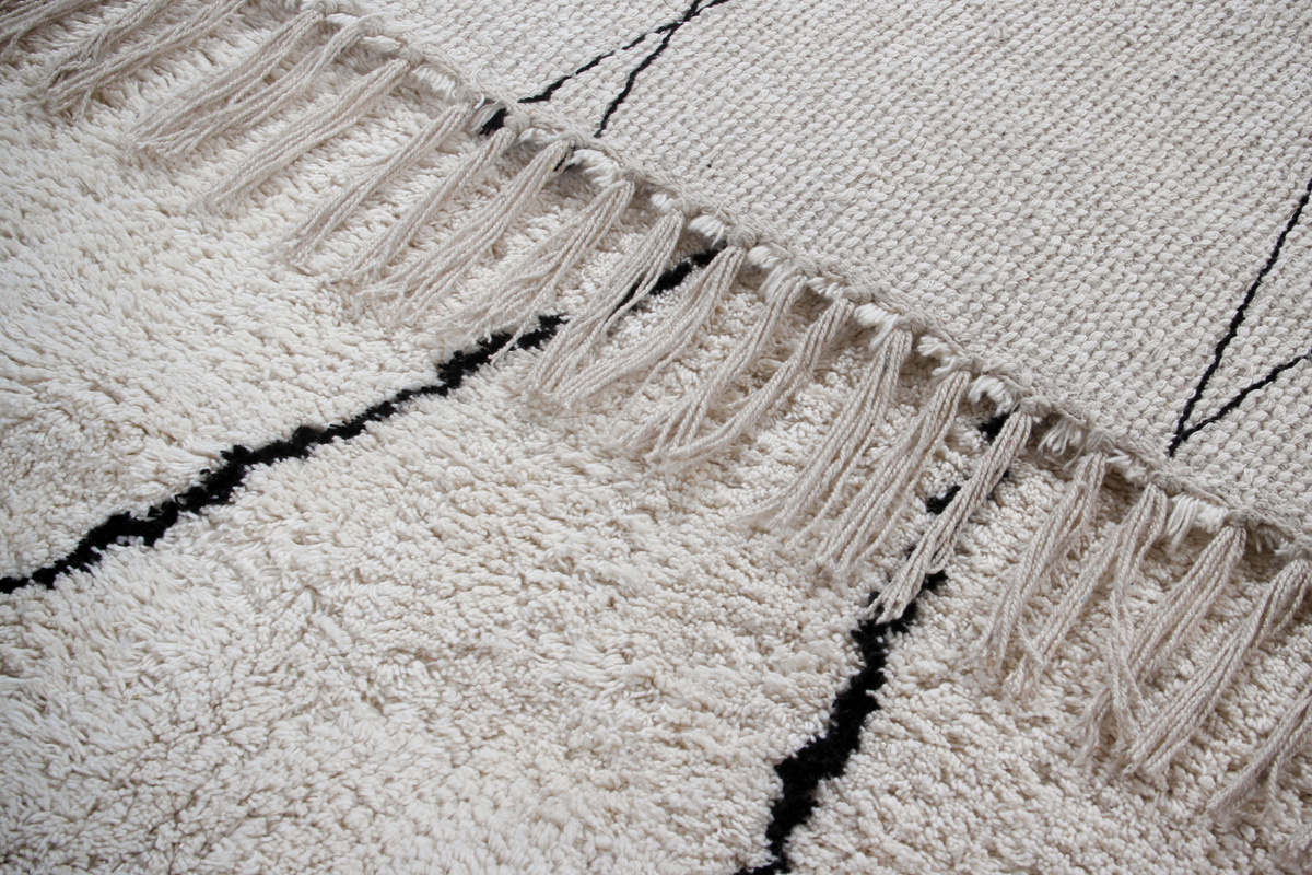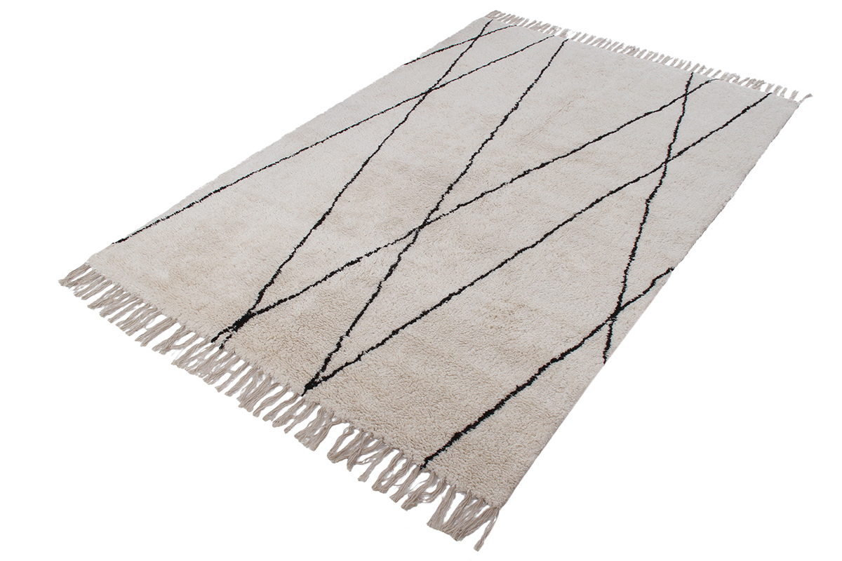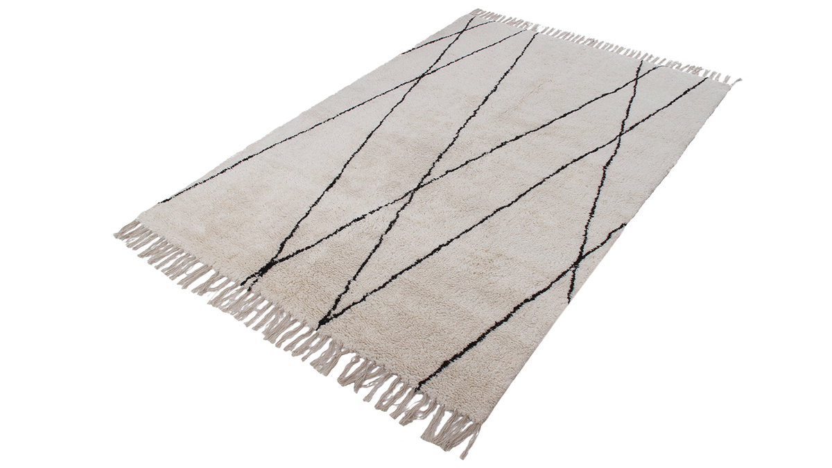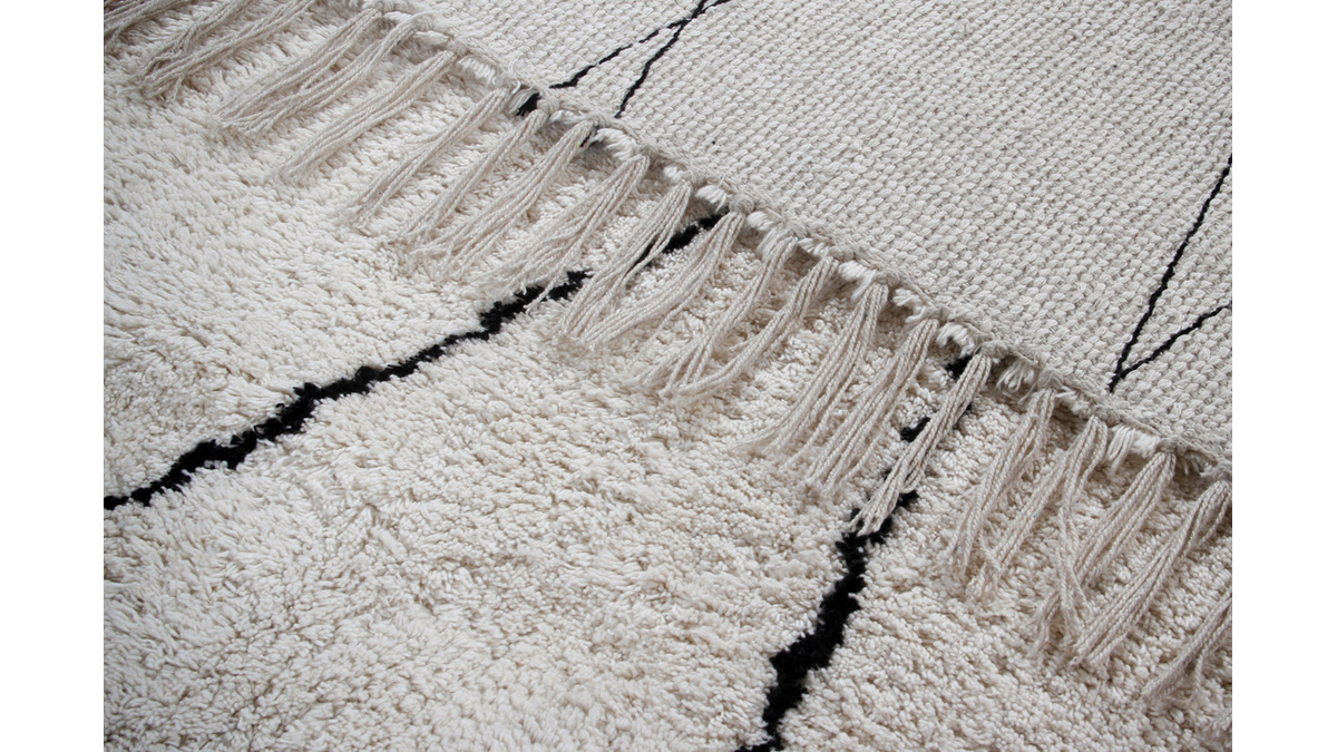 Apportez une touche ethnique tout en modernité avec le tapis berbère écru à franges 100% coton HODNA.
