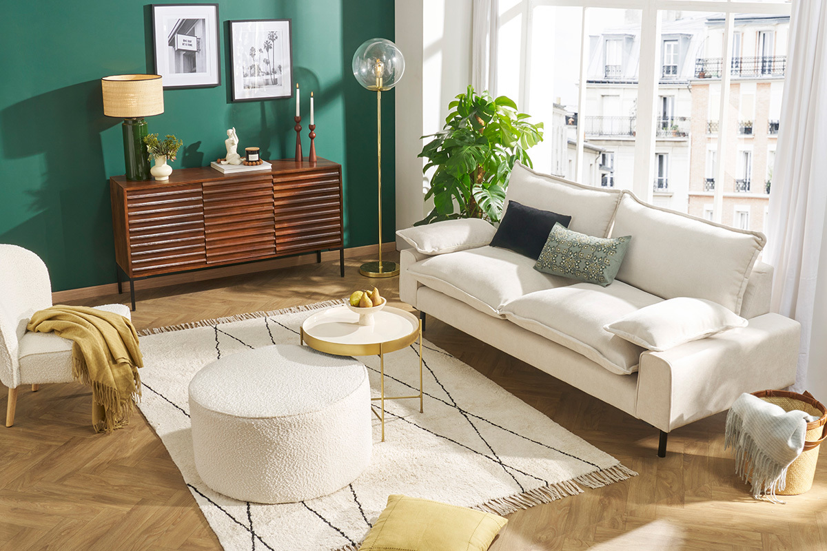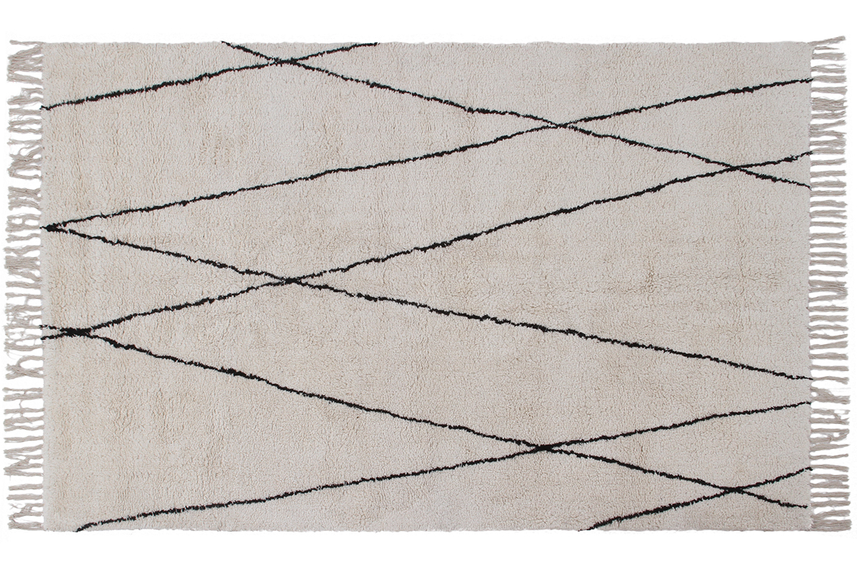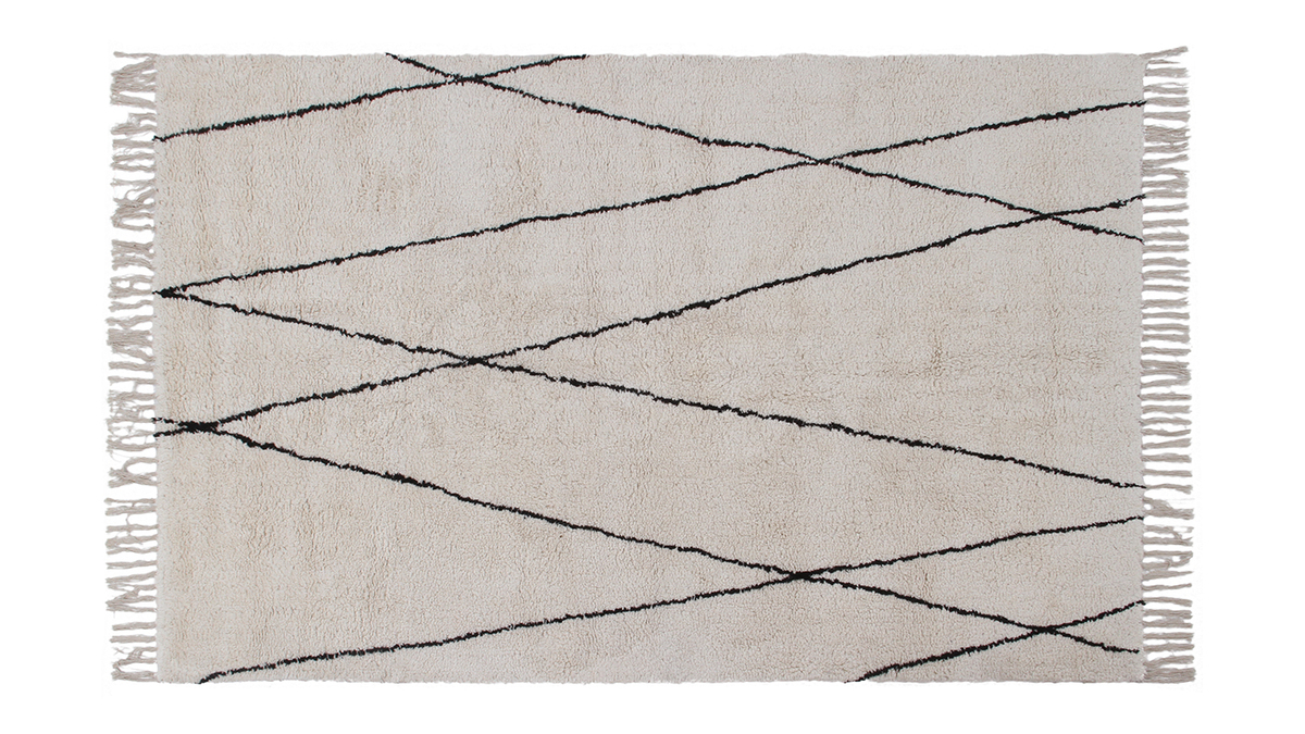 Apportez une touche ethnique tout en modernité avec le tapis berbère écru à franges 100% coton HODNA.