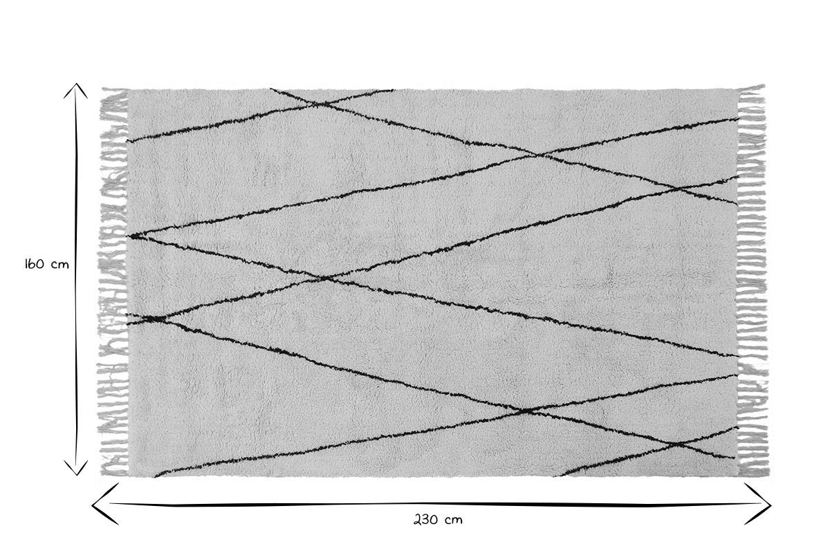 Grâce à sa taille généreuse (160 x 230 cm), le tapis HODNA ne manquera pas de mettre en valeur votre intérieur. La coton en fait un tapis agréable au toucher. Il est idéal pour un esprit cocooning. Tissé à la main, ce tapis est d'autant plus unique.