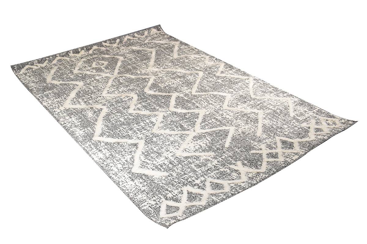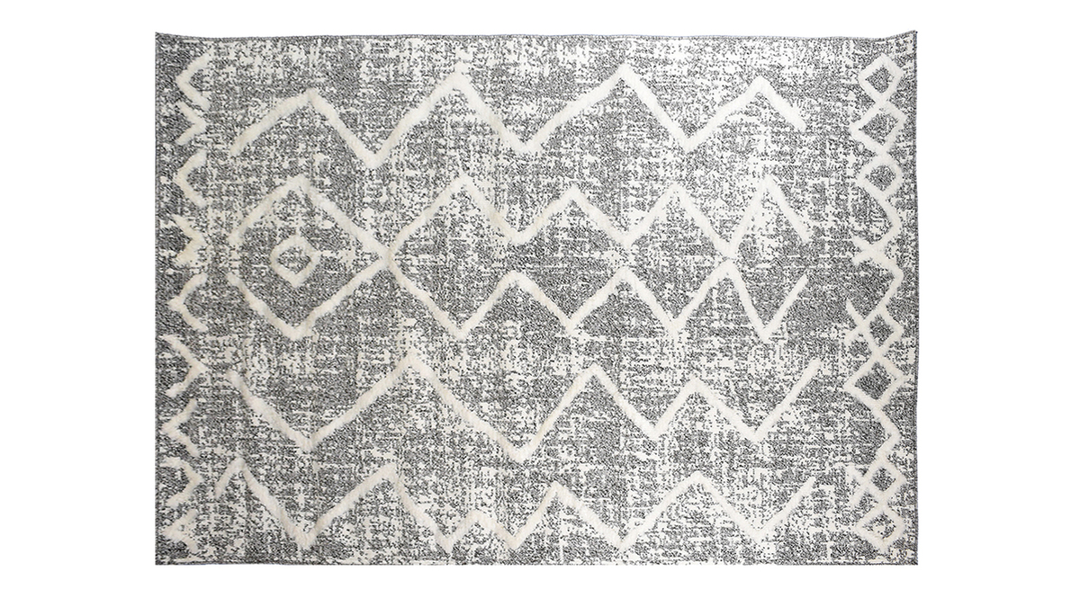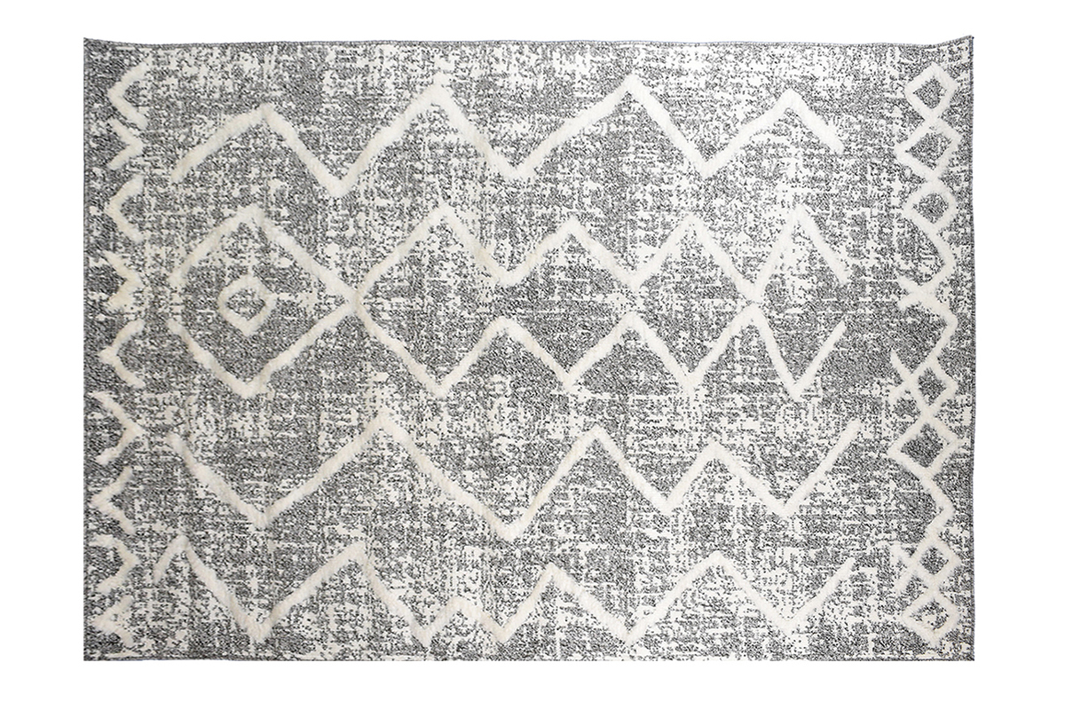 Avec ses motifs irréguliers tout droit inspirés d'autres contrées, ce tapis gris et beige est pile dans la tendance berbère. Il arbore un effet faussement usé qui vient parfaire son look et en faire une belle pièce d'authenticité. À l'âme nomade, ce tapis est une véritable invitation au voyage !