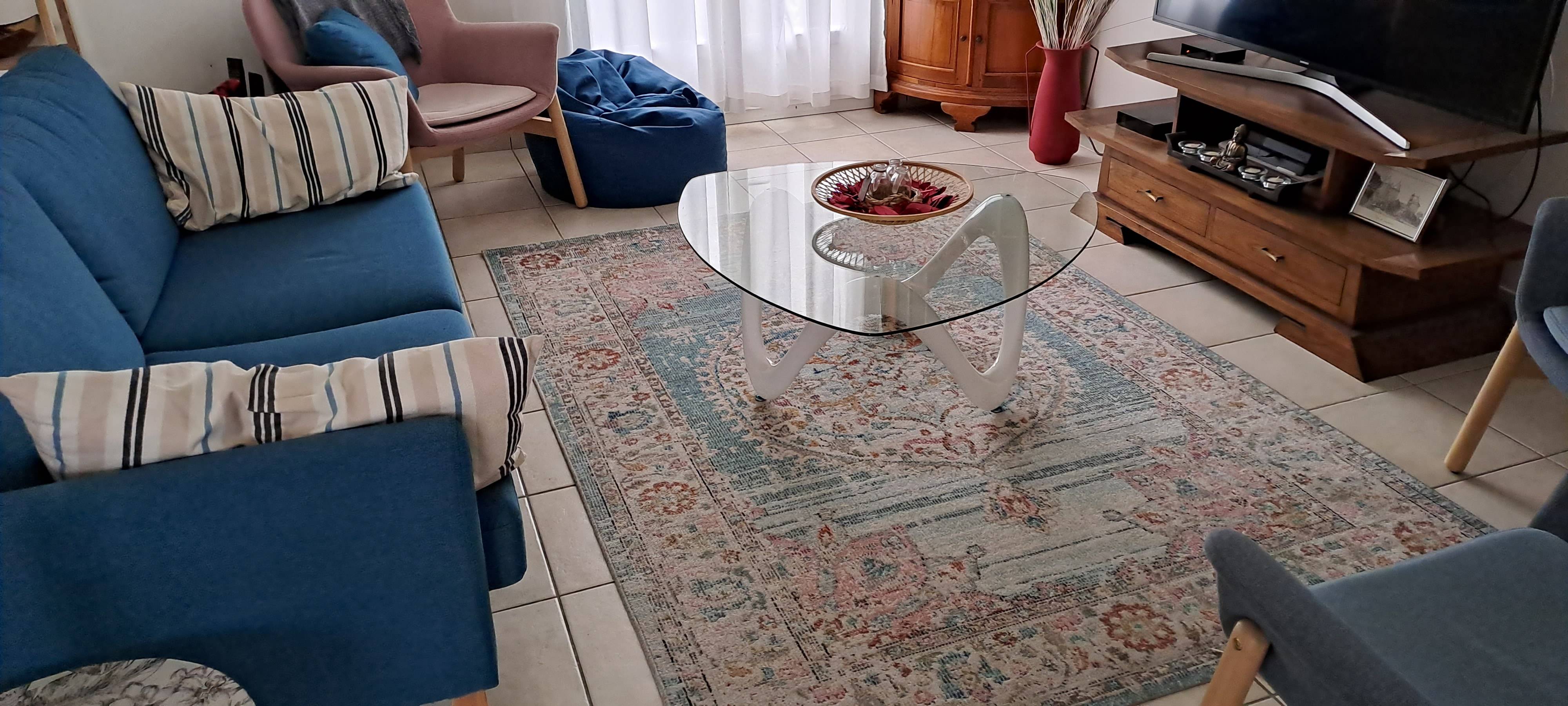 Un sublime motif floral inspiré des tapis orientaux habille le tapis TAET pour une déco aux airs d'ailleurs. Cette frise colorée semble usée par le temps. On aime ce bel effet qui donne à l'ensemble ce rendu authentique au charme unique. Avec TAET, on voyage dans un univers féérique où les motifs végétaux cotoient une farandole de couleurs sur un fond bleu tendre.