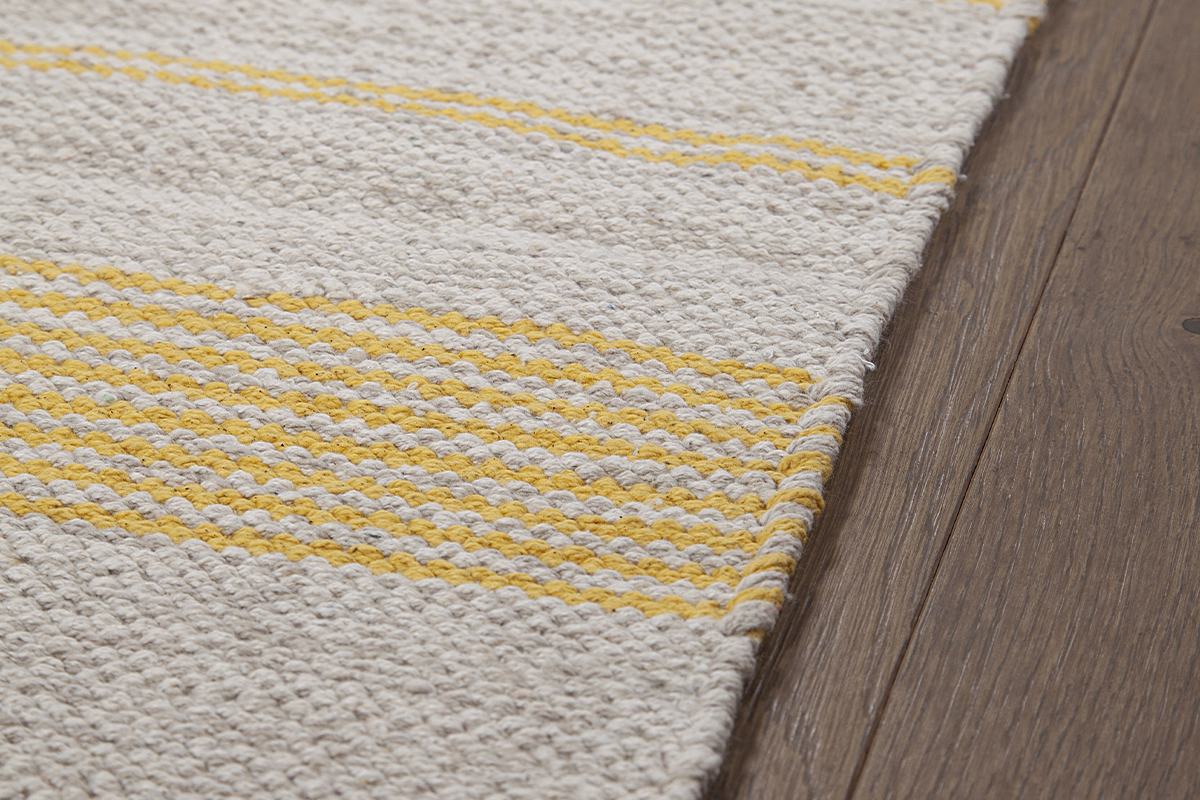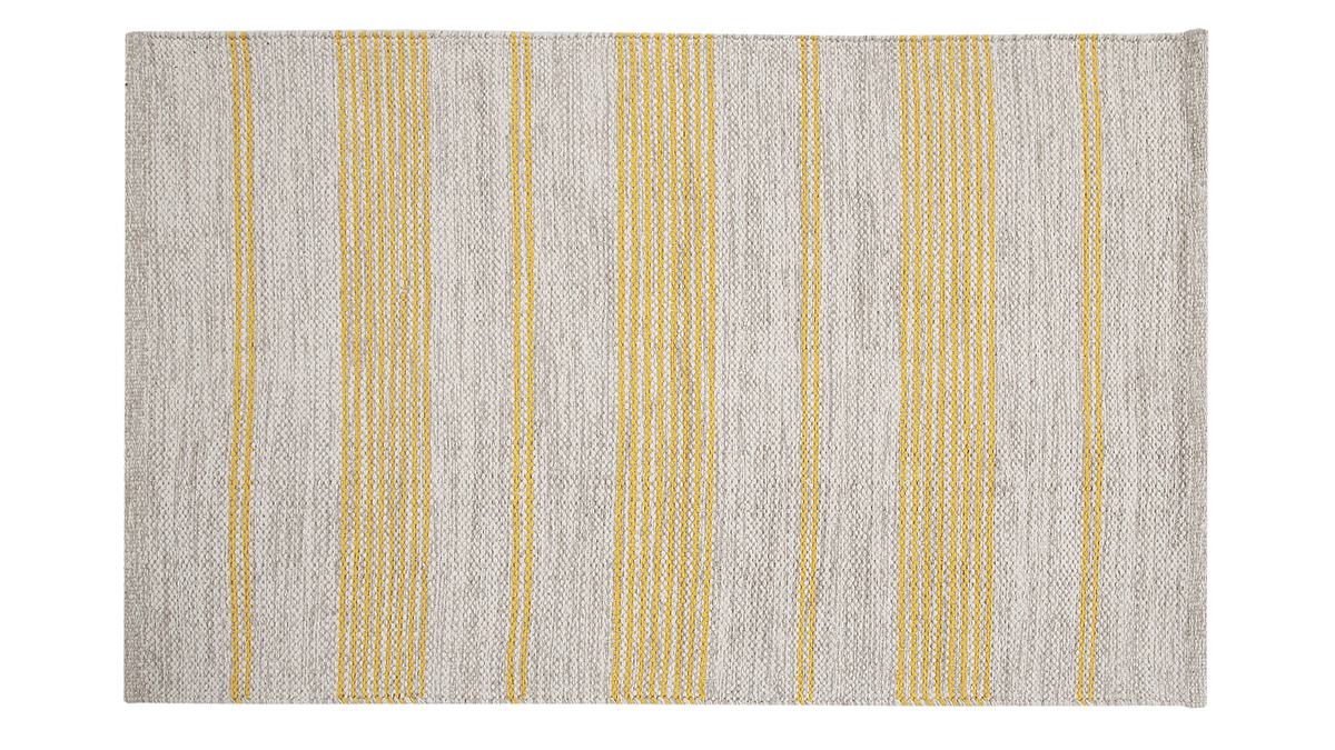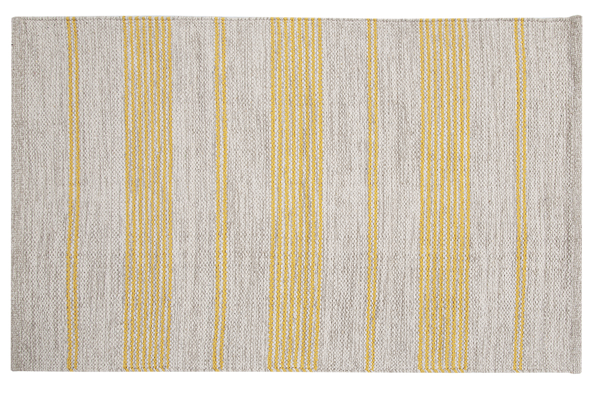 Synonyme de douceur et parfait pour réveiller un sol un peu sage, le tapis est un accessoire déco incontournable pour insuffler le renouveau ou valoriser une ambiance. Facile à vivre, CABOURG et sa combinaison de rayures jaunes sur fond beige sera idéal pour dynamiser votre intérieur. Ce petit tapis rectangulaire L50 x L80 cm au motif iconique, rayonnera autant dans une chambre à coucher en descente de lit cocooning, que dans un vestibule pour souligner un meuble de rangement ou délimiter une entrée. De quoi rappeler les beaux jours et l'ambiance bord de mer au quotidien !