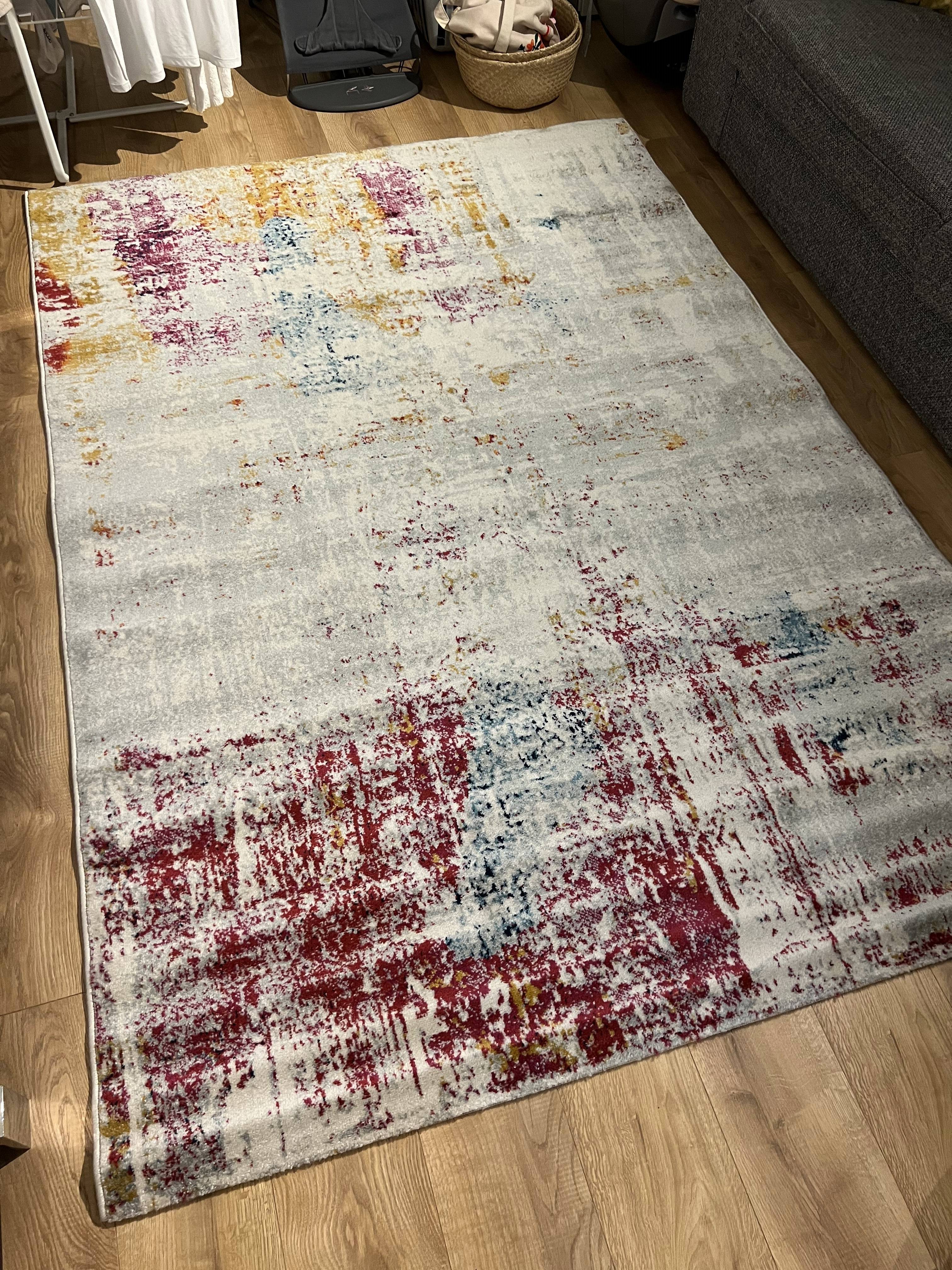 Le charme de ce tapis réside dans les détails de couleurs qui en font une pièce décorative unique et atypique. Mêlant jaune, bleu, rose, écru et gris foncé, le tapis CAPS habille le sol. Véritable toile abstraite multicolore, c'est une pièce décorative idéale pour apporter une touche colorée aux intérieurs modernes. Ses teintes indémodables se marient facilement avec tout style de décoration.