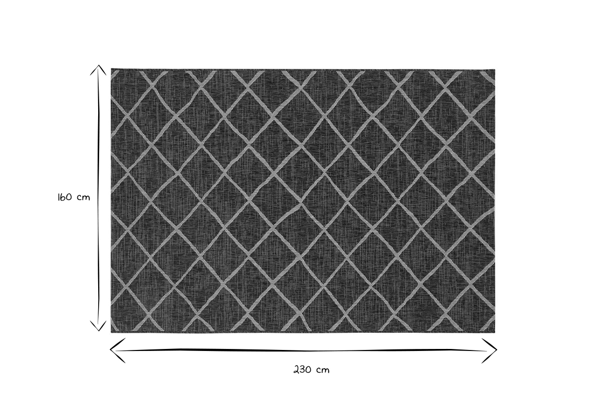 Ce tapis 160 x 230 cm est parfaitement adapté à un usage à l'intérieur comme à l'extérieur. Sa structure en fils de polypropylène est à la fois douce, facile d'entretien et très résistante.