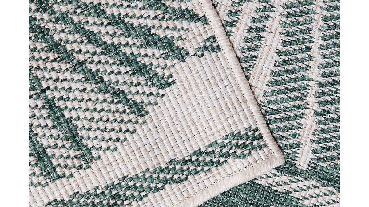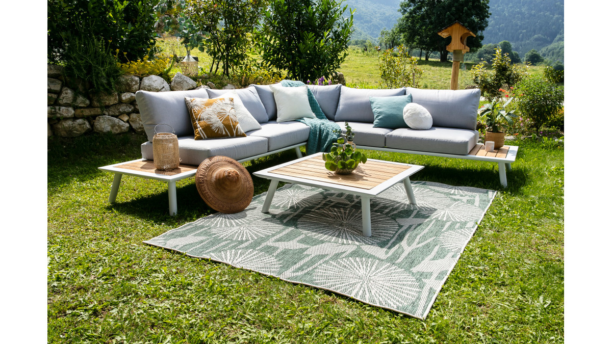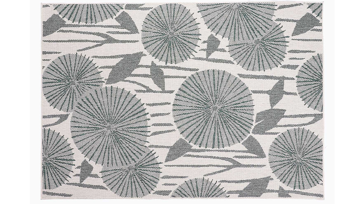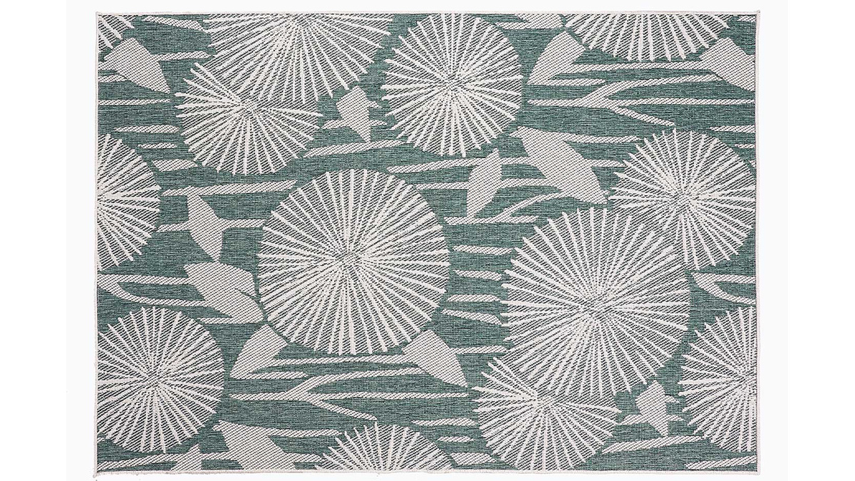 Dans le salon ou sur le balcon, il y a toujours une place pour les jolies nuances vert et blanc cassé et le motif végétal ultra tendance du tapis KONKA. Ce tapis d'extérieur a été conçu en polypropylène, un matériau facile d'entretien, adapté à un usage en intérieur comme en extérieur. On l'invite près du canapé pour donner un coup de frais à l'espace détente ou on le dispose sur une terrasse avec un joli salon de jardin pour un effet cocon garanti.