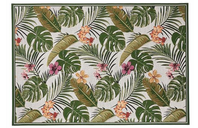 Aménagez une terrasse cosy où il fait bon vivre grâce à ce tapis (100% polypropylène) adapté à un usage à l'intérieur comme à l'extérieur. Le tapis TAHIA s'habille de motifs végétaux qui sonnent comme une promesse d'évasion en toute saison. Il nous transporte immédiatement au coeur de la jungle tropicale.
