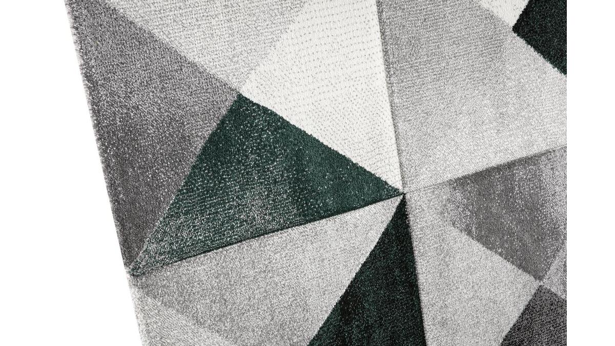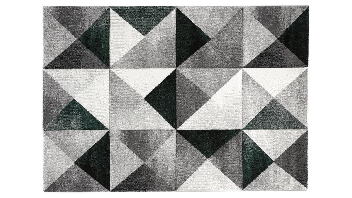 Son motif géométrique décliné dans un joli camaïeu de gris mâtiné de vert crée une composition rythmée. L'intensité graphique est renforcée par le formidable contraste des couleurs. Le tissage unique du tapis CHROMA donne l'illusion que les couleurs sont délavées, le motif est comme pixellisé.