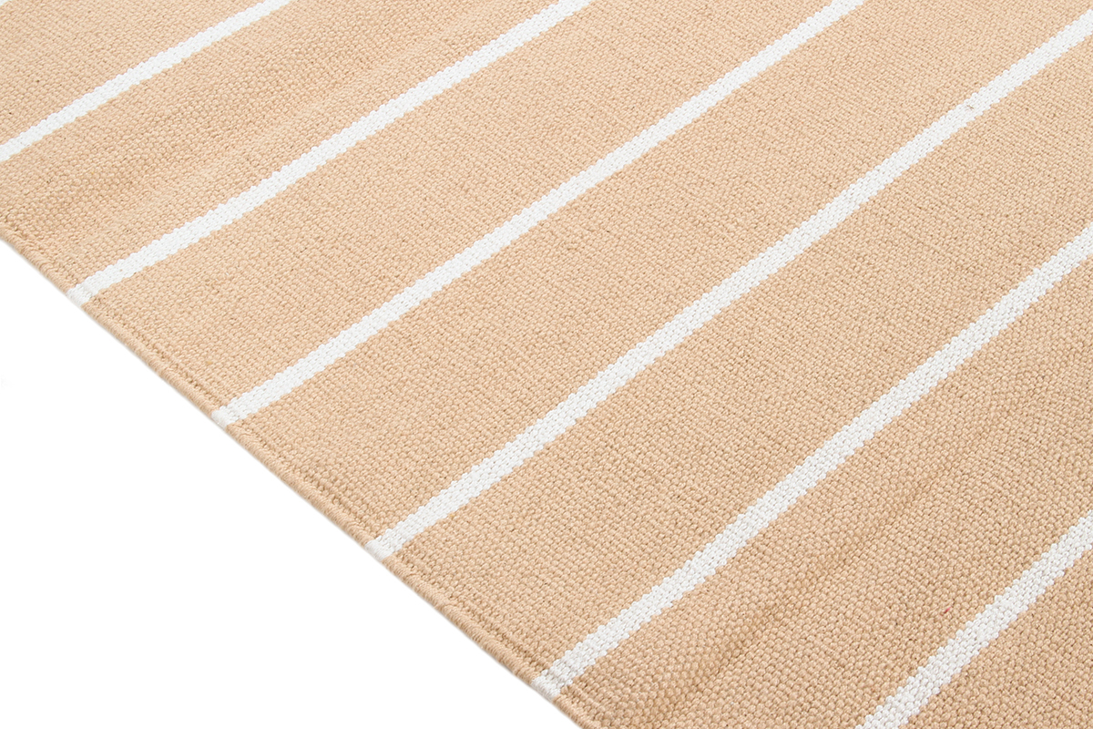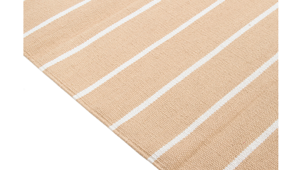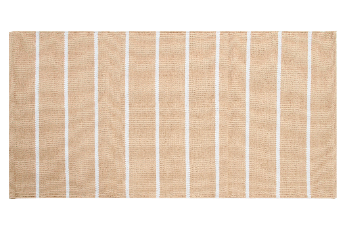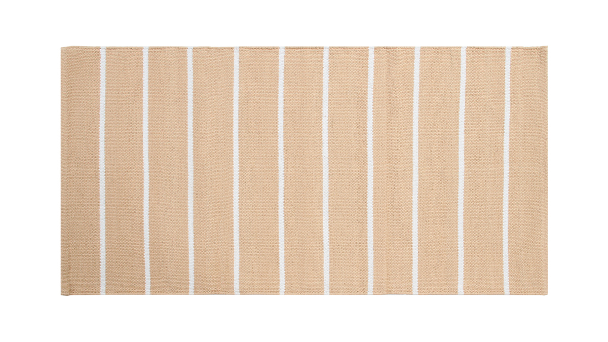 Clin d'oeil déco aux maisons du sud baignées de lumière, avec son motif bayadère, ce tapis beige à rayures blanches charme par son naturel et invite aux vacances... Toute l'année !