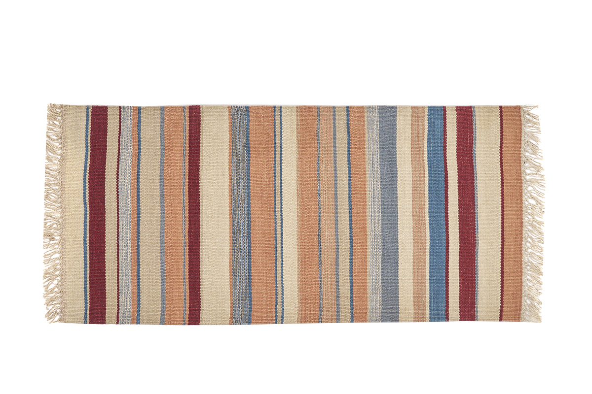 Grâce à son format compact de 60 x 120 cm, le tapis multicolore SUPLA est idéal pour habiller un couloir, souligner un espace de passage ou encore réchauffer l’entrée de la maison. Il s'intègre parfaitement dans les petits espaces ou peut être utilisé comme complément décoratif à un tapis plus grand. Son style à la fois ethnique et bohème convient à une large gamme de styles d’intérieurs : du scandinave au vintage, en passant par le style bord de mer ou même une déco plus contemporaine.