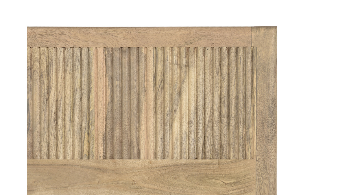 Fabriquée à partir d'un matériau durable, robuste et facile à entretenir, cette tête de lit gravée en manguier massif se tient prête à nimber votre espace nuit de son blond lumineux. Contrastée, cette essence de bois exotique se pare de fines gravures verticales, de quoi apporter une note chaleureuse et originale à votre nid douillet ! Dans une pièce de vie au style ethnique chic ou tropical, signature déco d'un lit 2 personnes, cette tête de lit 160 cm aux dimensions L160 x H110 cm enveloppera de douceur un lit de 140 cm et délimitera à fleur une literie 160 cm.