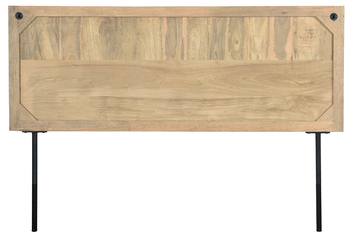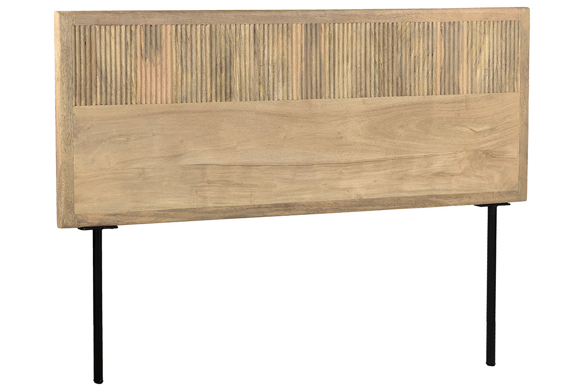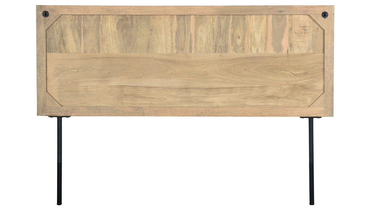 Tête de lit en bois et métal livrée prête à monter. Montage simple, seul le piètement est à fixer.