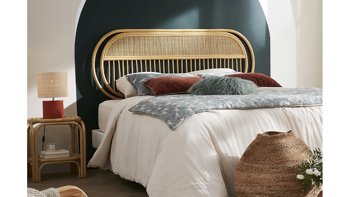 Empreinte de charme et d'authenticité, indémodable et intemporelle, cette tête de lit déco est sublimée par sa fabrication en rotin. La fibre pliée et tissée à la main donne vie aux tiges et cannage. Revival rétro, le rotin est une matière aussi résistante que légère qui met à l'honneur le travail d'orfèvre réalisé sur cette tête de lit artisanale.
