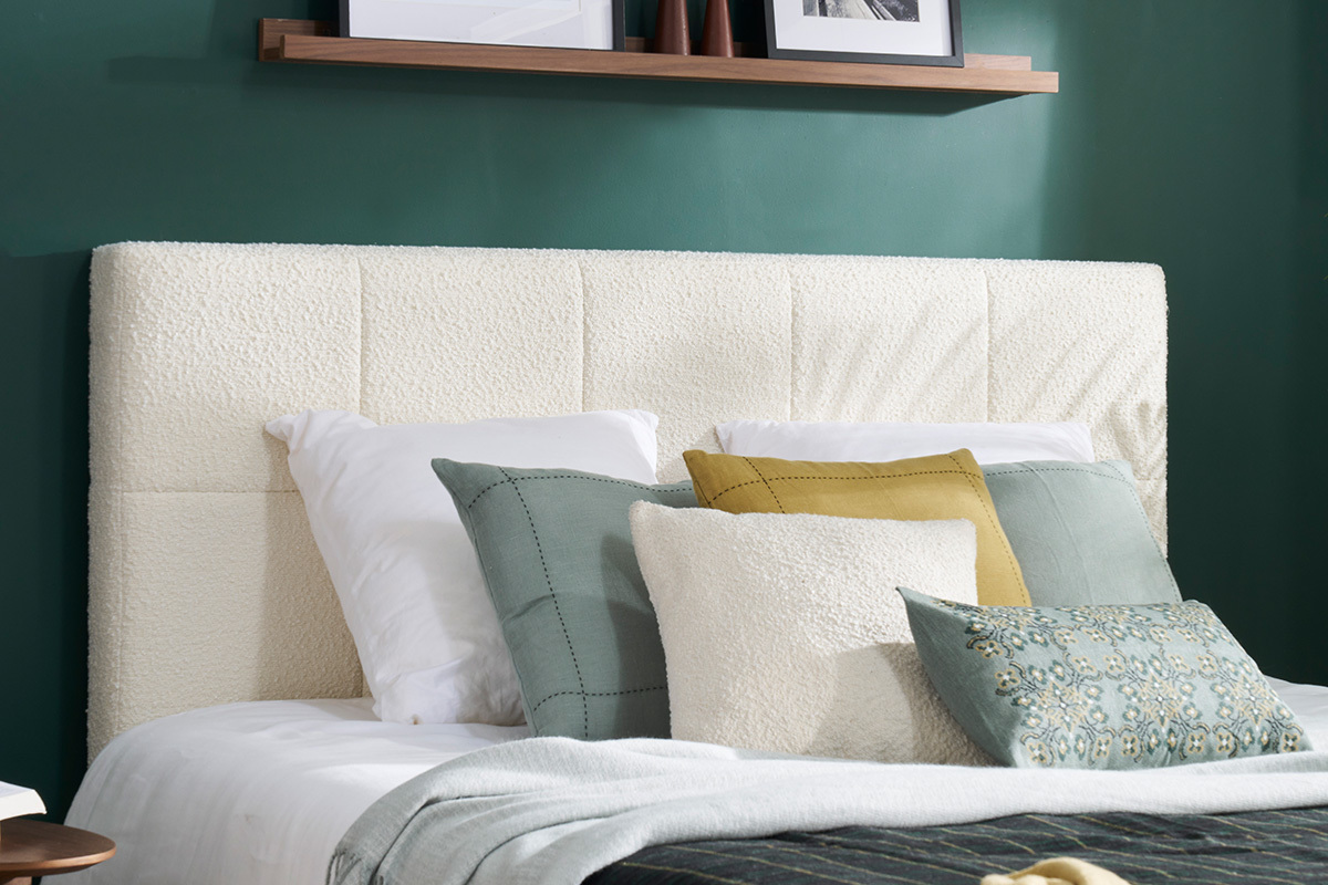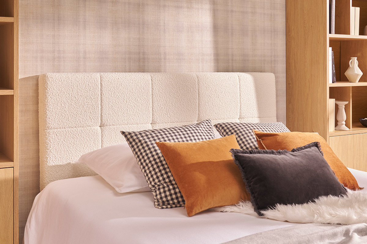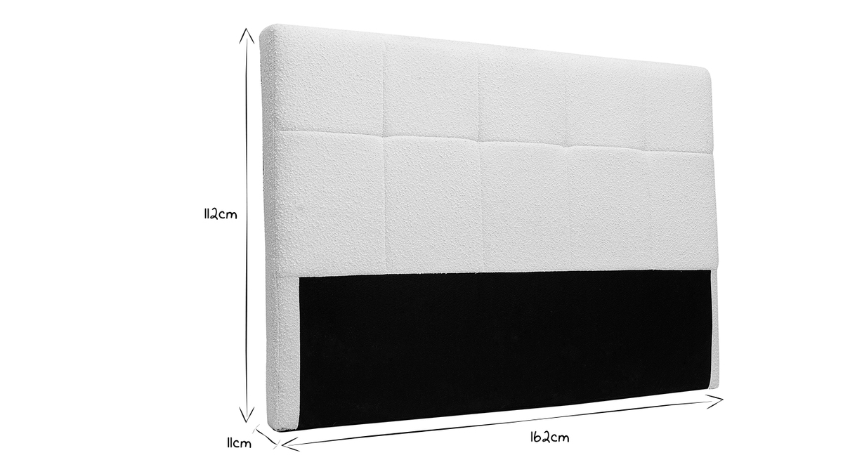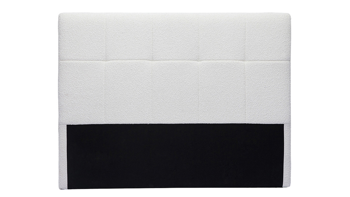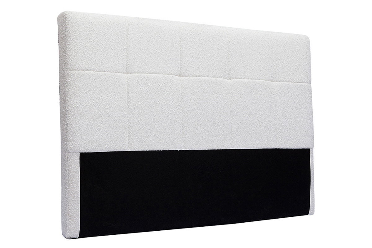 Ce modèle de tête de lit déco est habillé d'un revêtement en tissu effet laine bouclée blanc (100% polyester) au toucher tout doux ! Cette tête de lit en tissu bouclette possède également des renfoncements pour donner un effet capitonné très chic.