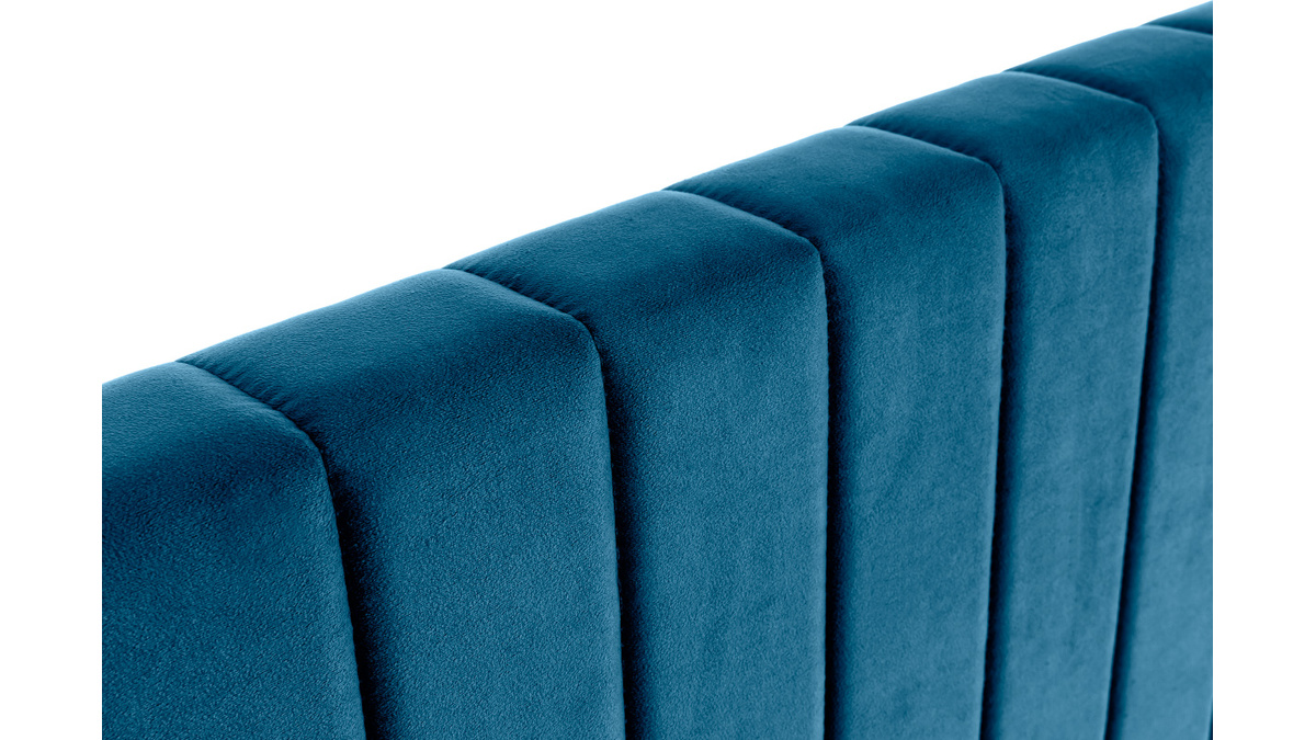 Cette tête de lit en tissu velours a bien des atouts pour habiller l'espace nuit. Symbôle du chic et matière tendance, le velours est un indispensable dans les ambiances actuelles. NEHA l'adopte dans une version couleur bleu foncé moderne et élégante. Des lignes verticales viennent structurer cet ensemble en velours. On aime ce joli mélange entre la douceur du velours et le motif graphique qu'elles dessinent. Avec son coloris discret et intemporel, ce modèle de tête de lit bleu foncé est idéal pour faire de la chambre un espace cosy et apaisé.