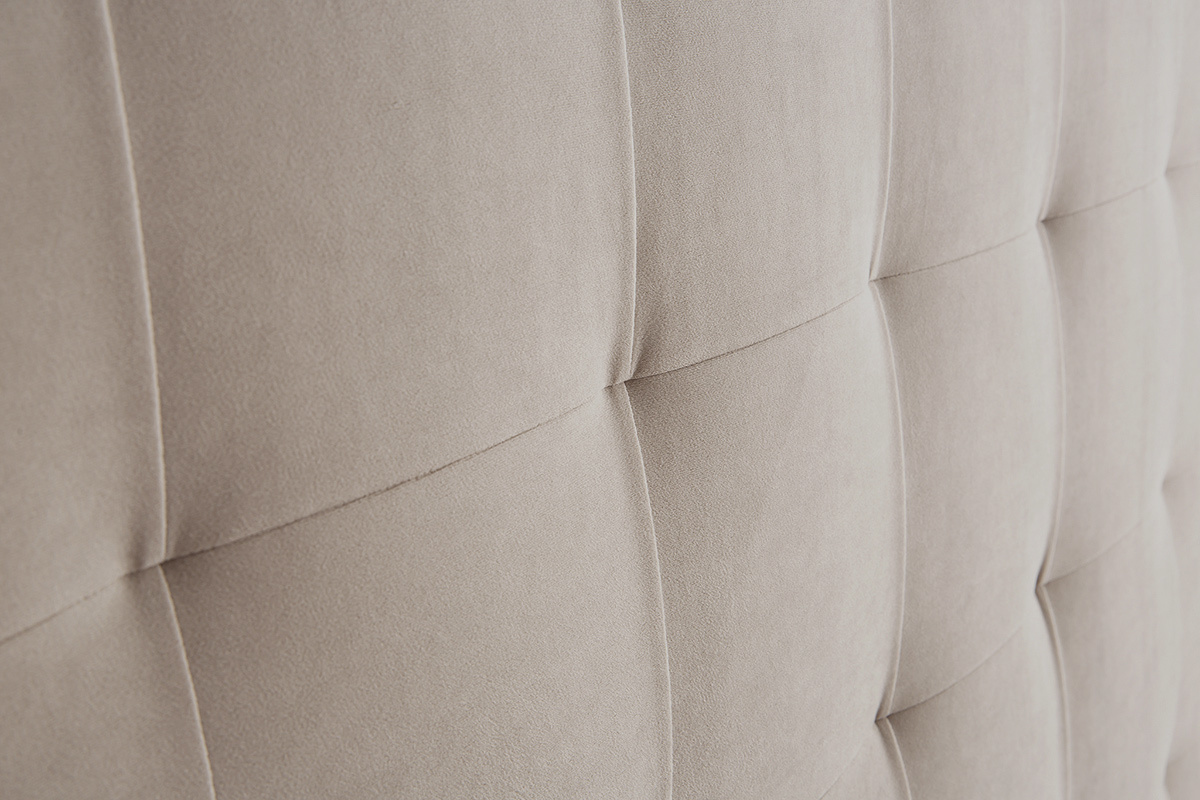 Le revêtement tissu velours couleur taupe (100% polyester) en fait par ailleurs une pièce intemporelle et indémodable.
