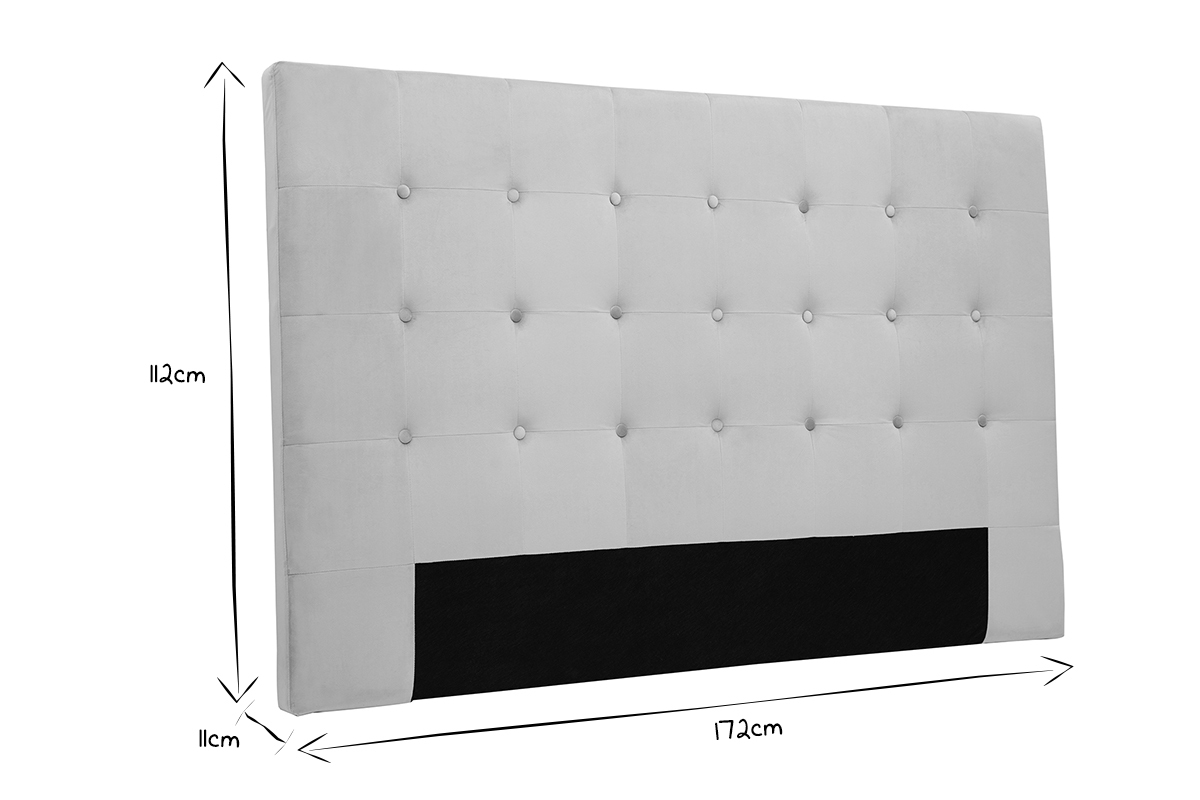 Avec ses dimensions L170 x P10 x H110 cm, cette tête de lit 160 cm est parfaitement adaptée pour embellir un lit double 160 cm. Pour la mettre en lumière, misez sur des belles appliques en fibres naturelles à installer de chaque côté de votre nouvelle tête de lit en tissu velours !