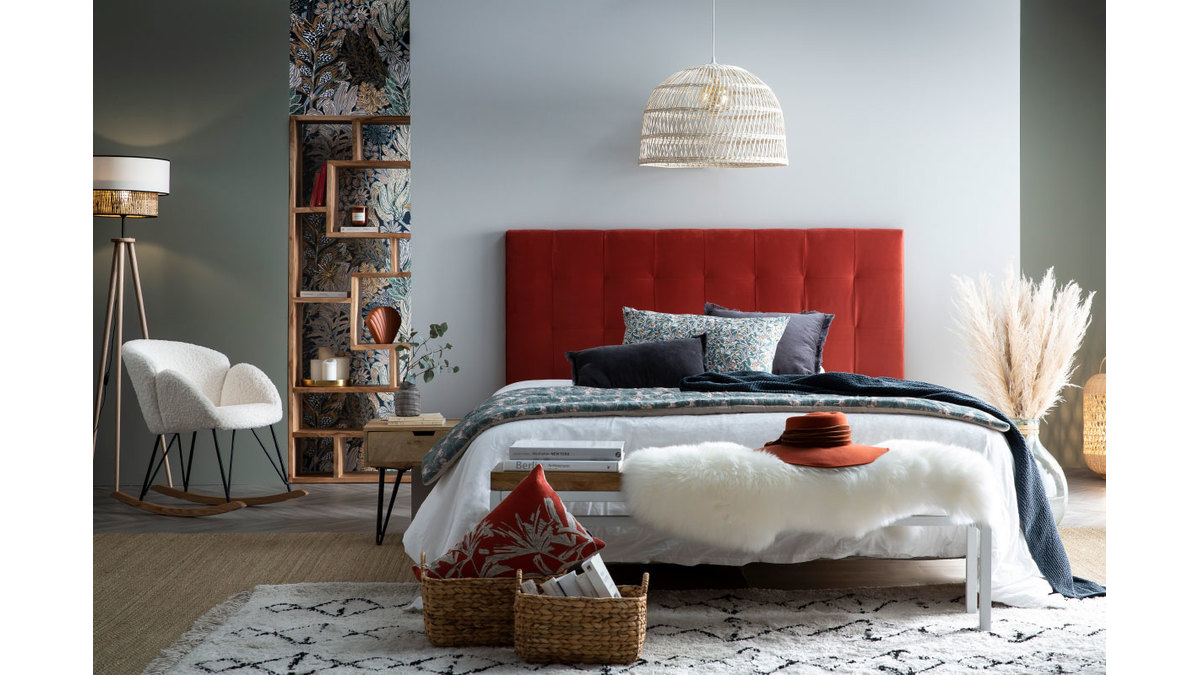 Idéale pour se concocter un espace nuit cosy et confortable, cette élégante tête de lit en tissu velours terracotta apportera une vraie touche déco à la pièce en un clin d'oeil. Le style de cette tête de lit capitonnée, à la fois baroque grâce aux capitons et moderne avec son molletonnage carré, donnera à votre chambre une personnalité empreinte de charme.