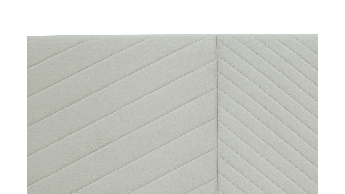 Revêtue d'un magnifique velours beige, cette tête de lit contemporaine est une pièce élégante. Le velours est un matériau raffiné au rendu luxueux et au toucher délicat. En l'invitant dans la chambre et en l'associant à un motif graphique, RIGA transforme le coin nuit en temple du chic. Le velours et les surpiqûres forment une duo parfait mêlant chic rétro et reliefs contemporains. La chambre devient un écrin de douceur et de raffinement pour des nuits royales.